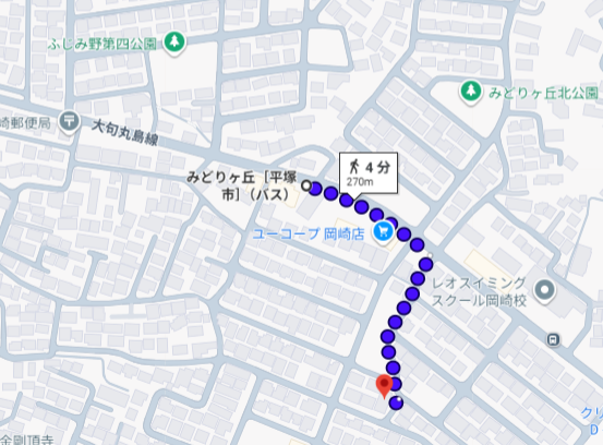 小田急小田原線「伊勢原駅」より「みどりヶ丘」バス停まで10分、徒歩3分