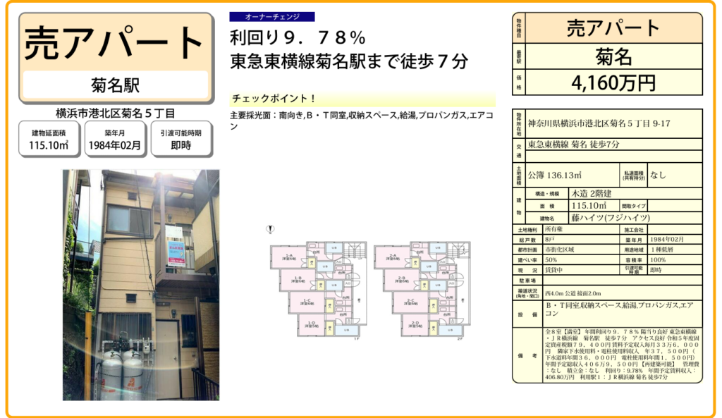 物件メニュー 【NEW!】ランドヒルズ横浜 横浜市南区堀ノ内町2-239-7 【NEW!】サンヨーハイツ 横浜市港北区菊名5-3-27 【NEW!】リシェス立野台 神奈川県座間市立野台2-16-27 【NEW!】セレーノプリモⅠ 東京都町田市相原町1237-5 【築浅!】横浜市戸塚区倉田町アパート 神奈川県横浜市戸塚区倉田町 【NEW!】ラフィーネ磯子 神奈川県横浜市磯子区森2丁目10-12 【NEW!】磯子JSハイツ 横浜市磯子区久木町22-11 【売地】保土ヶ谷区鎌谷町 横浜市保土ヶ谷区鎌谷町41-3 【売地】町田市野津田町 東京都町田市野津田町2766-3 【NEW!】エルム南林間 大和市南林間5丁目8-29 【NEW!】ビバ・エンプレスチモYOKOHAMA 横浜市南区六ッ川1丁目248-58 【NEW!】レオパレスISO 横浜市磯子区岡村3-7-4 【NEW!】藤ハイツ 横浜市港北区菊名5-9-17 【NEW!】グロリアス戸塚 横浜市戸塚区汲沢6丁目37-8 【新発売】鵠沼藤ヶ谷 藤沢市鵠沼藤ヶ谷 日吉本町3区画 横浜市港北区日吉本町5丁目 荏田町3区画 横浜市青葉区荏田町 日吉本町5丁目AP 横浜市港北区日吉本町5丁目 Philippine Davao 新築マンション販売<手数料不要> オーシャンビュー最上階23F、22F Philippine Davao 土地販売情報<手数料不要> narrapark区画整理地内 SALE販売事例物件の本当の価値を説明するのが当社の特長です。 ホーム > 【NEW!】藤ハイツ SALE18 【NEW!】藤ハイツ 横浜市港北区菊名5-9-17 2025年2月大幅リフォーム済み! リフォーム済みの綺麗なお部屋です! 菊名駅チカ!徒歩7分!
