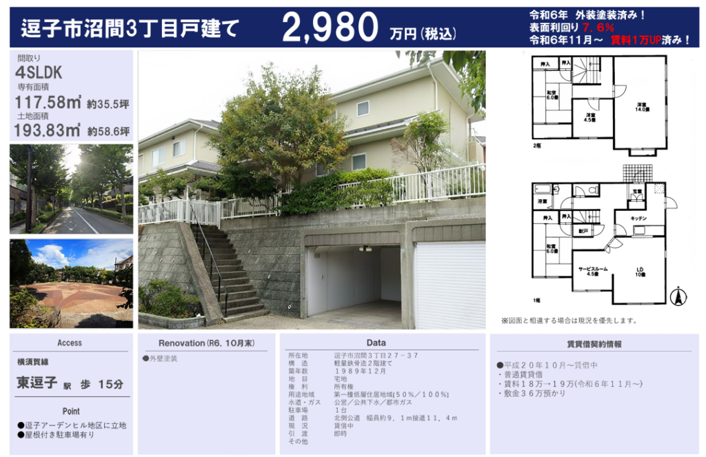 逗子市沼間3丁目戸建て 2980万